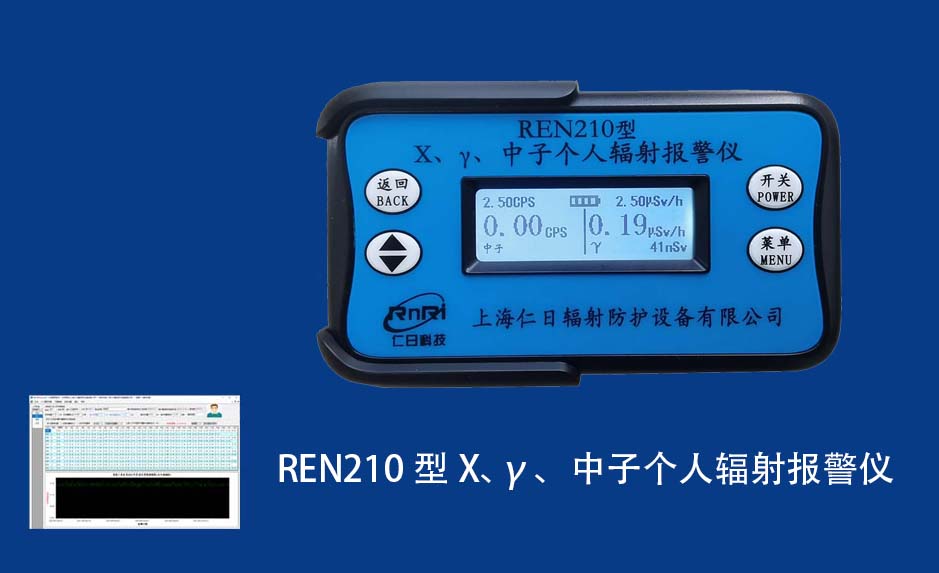 REN210 個人計量報警儀REN210型X、γ、中子個人輻射報警儀內(nèi)置SiPM和鋰玻璃晶體組成中子探測器儀器,采用反照率方式探測中子射線,同時也能探測X、γ射線。因此它可同事監(jiān)檢測X、γ、中子三種射線。能顯示工作場所的劑量當量率和累積劑量,更換電池時,日期及累積數(shù)據(jù)能永久保存?蛇x配RenRiPersonal個人劑量管理軟件,該軟件可存儲多個人的歷史數(shù)據(jù),能記錄日累積、月累積、年累積、輻照時長、計算平均劑量率、扣除或不扣除本底輻射,且以文字和圖譜的方式展現(xiàn)數(shù)據(jù)。廣泛應(yīng)用于環(huán)保、化工、水泥、煤礦、土木工程、石油、醫(yī)院、疾控、進出口商檢、核電、加速器、機場、中子源庫和其他安檢、邊境控制海關(guān)檢測等領(lǐng)域中的工作人員進行個人安全防護監(jiān)測及放射性提示。